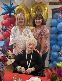 Carol Rogen Unit 29 of Watford City celebrated the 99th birthday of Lucille Broderson, a 75-year Auxiliary member. Lucille (seated) is pictured with Sharon Leiseth, Unit Secretary (left, standing) and Jill Carstens, Unit President. Photo submitted by Jill Carstens.